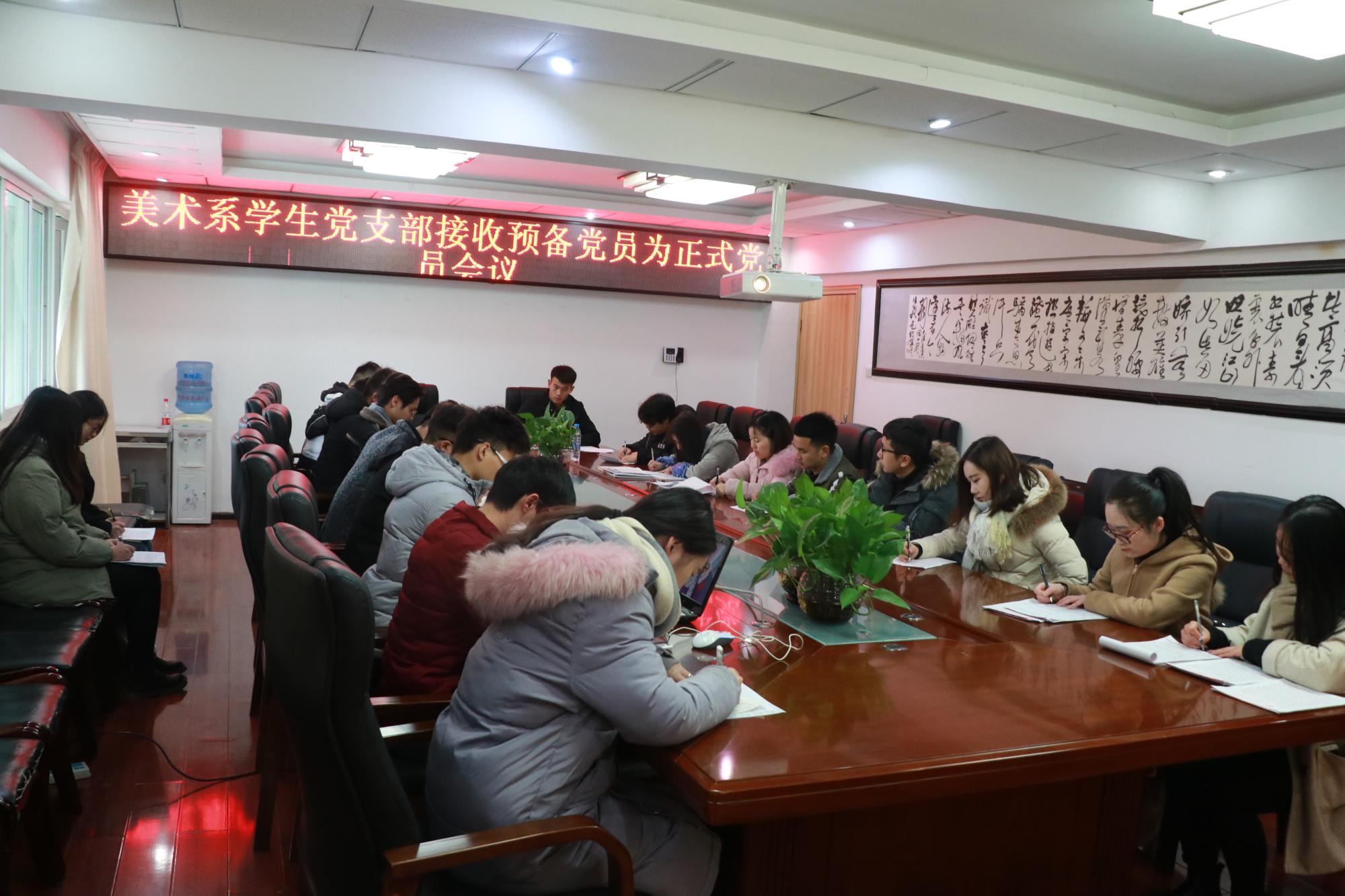 12月17日下午,z6mg人生就是博官网美术系员工党支部在明义楼会议室召开预备党员转正会议。此次会议由美术系员工党支部书记谢琦同志主持,共有22名党员参加会议,其中正式党员12人,预备党员10人。