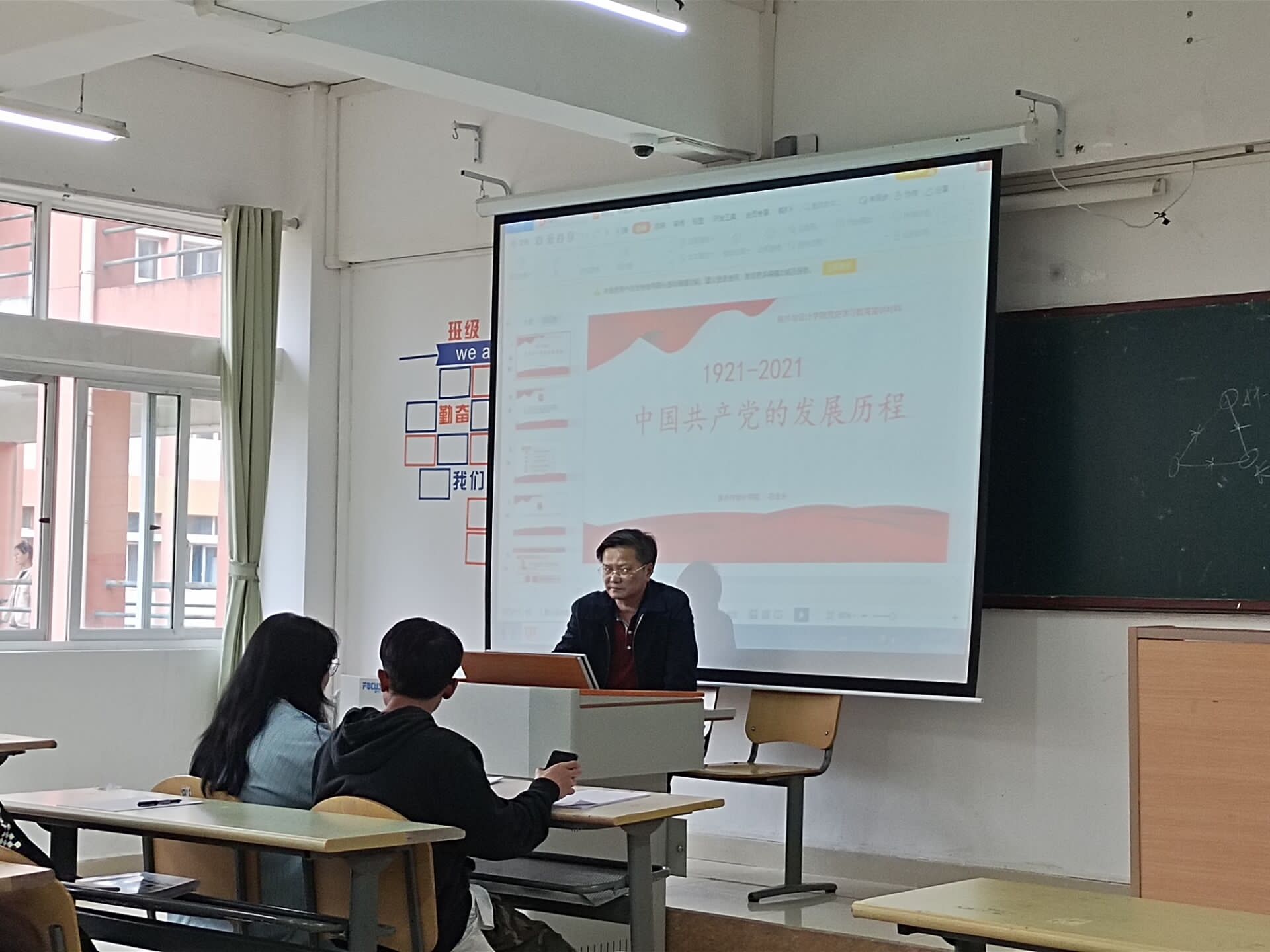 4月12日中午,美术与公司党委书记石含洲在明德楼425教室以“中国共产党发展历程”为主题对美设公司第53期入党积极分子培训班全体同学开展专题讲座。