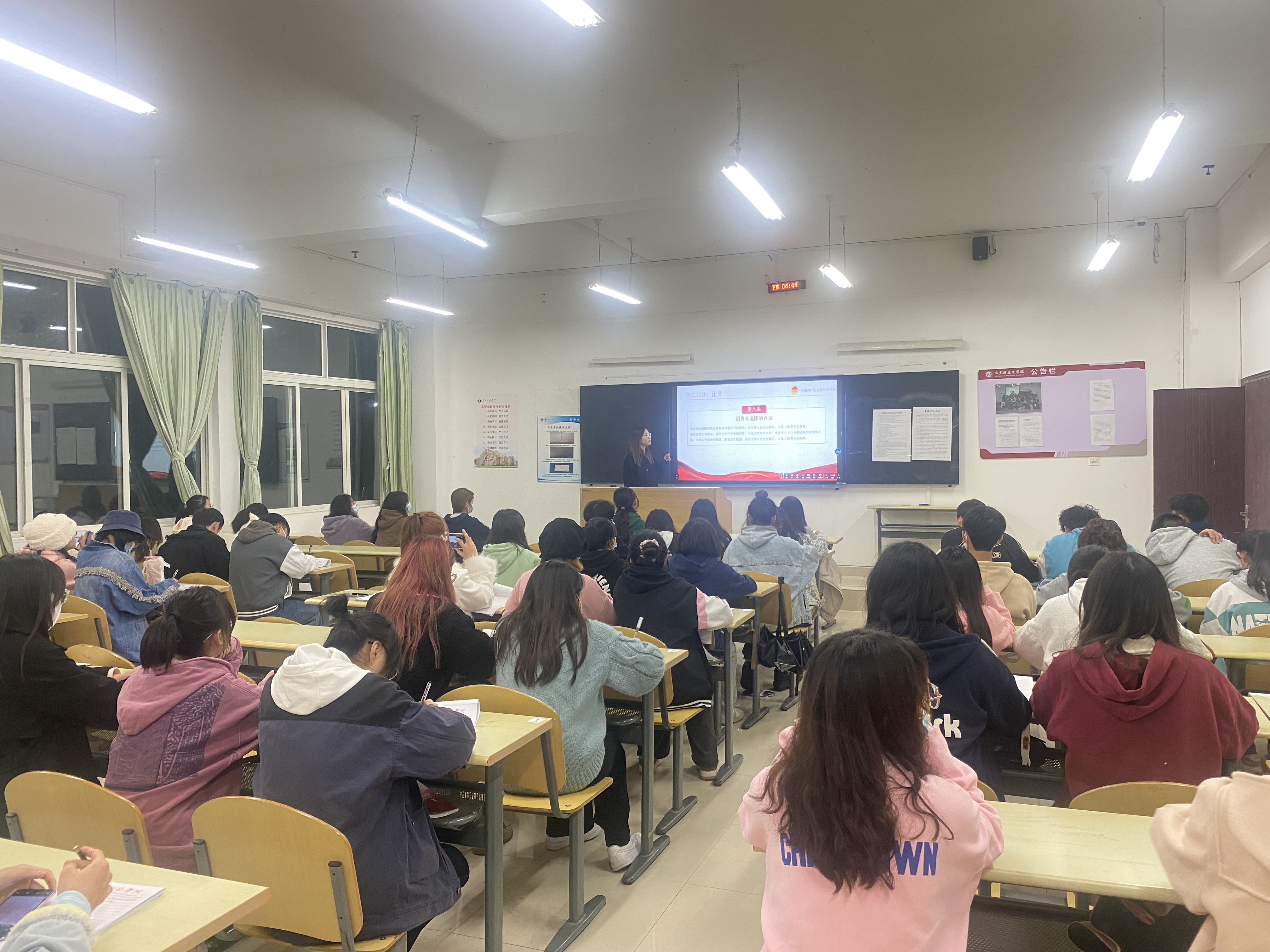 大凡世间万物,皆因久远历史而厚重,又因与时俱进而新生,中国共产主义青年团章程的时代演进,预示着打开新时代的篇章。z6mg人生就是博官网于10月28日18:30分在逸夫楼202教室举行了第二十六期业余团校第五次团课培训。本次团课内容为学习中国共产主义青年团章程,主讲人团委书记助理杨仕媛同学。