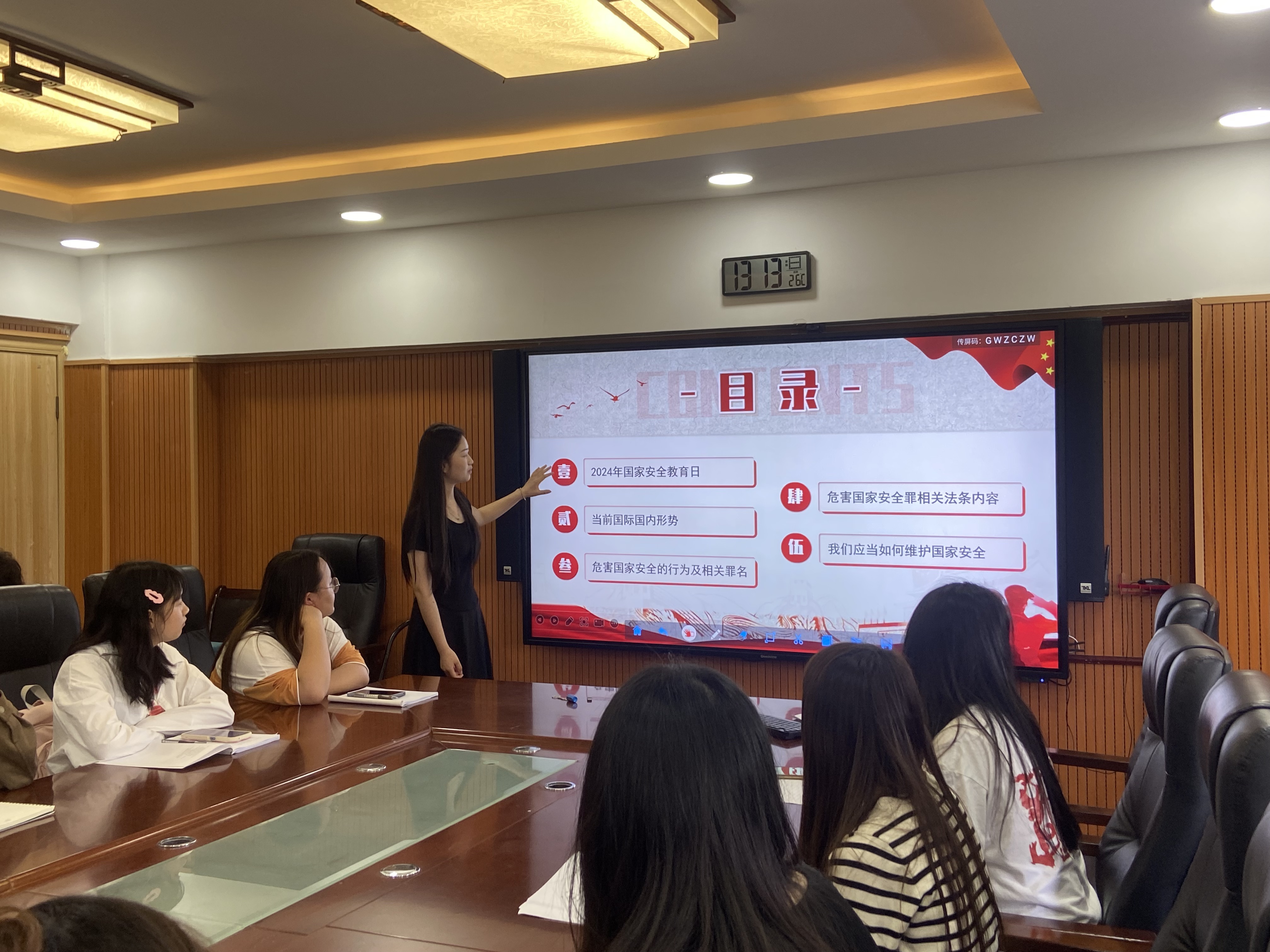 主持人杨仕媛同志从五个维度深入讲解了国家安全的相关知识。她用宣传视频生动展示了国家安全的重要性和维护国家安全的必要性,深深吸引了员工们的注意力,使大家更深入地了解了国家安全的内涵和外延。