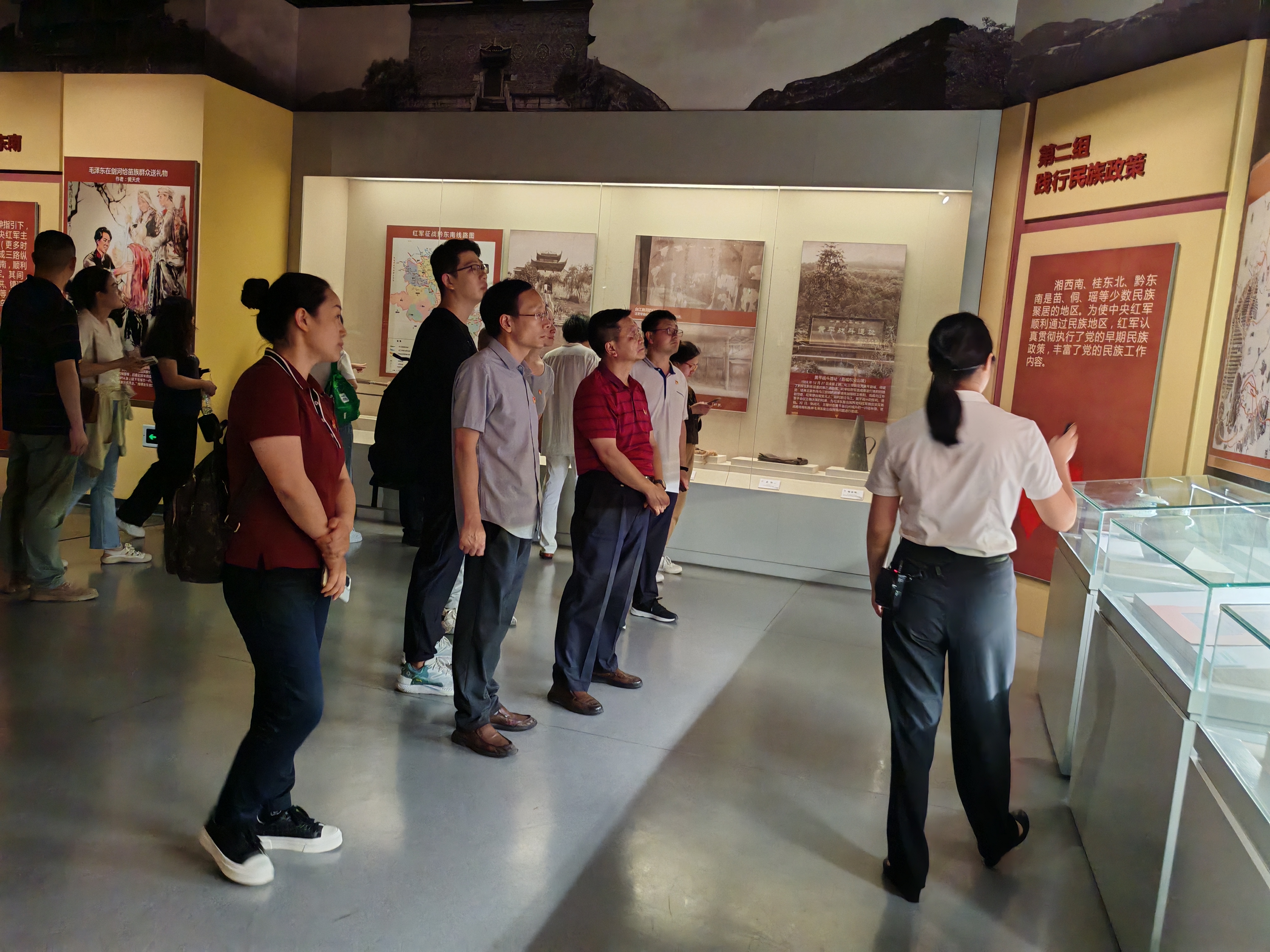 活动分为两个阶段,第一阶段是“探寻红色足迹,体悟革命精神”参观黎平会议纪念馆。在纪念馆讲解员的引导解说下,全体党员走进黎平会议会址,重温了黎平会议过程,感受红军敢闯新路、敢于突破、敢于胜利的革命精神。