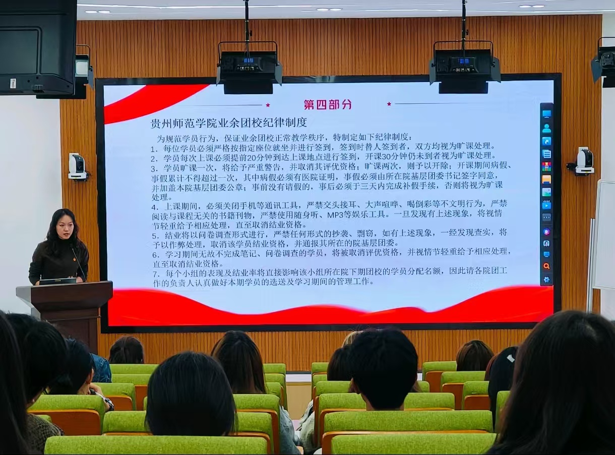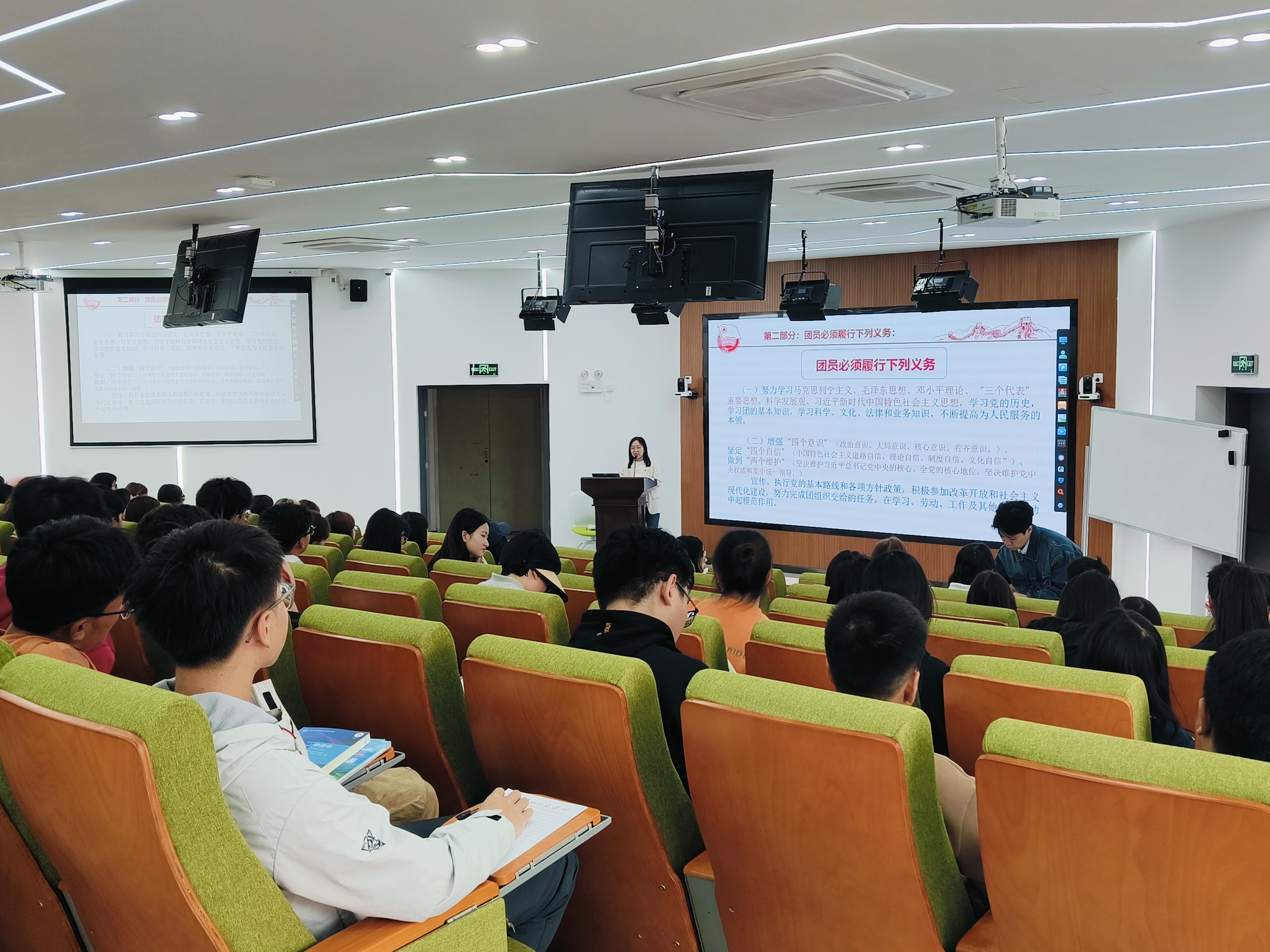 在开班仪式上,全体成员奏唱共青团团歌并庄严宣誓,洪亮的声音凝聚了团员的青春和力量,鞭策着他们将自身的青春活力注入社会主义现代化建设的伟大事业当中,勇担使命,砥砺前行。随后,物理与电子科学公司党委副书记吴丽致辞,要求同学们严明纪律,认真学习,发挥模范带头作用。接着,z6mg人生就是博官网团学负责老师黄婧分别从团员义务、团的组织制度、团的基本理论和发展史、团的纪律、新时代团员青年应该怎么做等五个方面进行培训,强调团组织要牢记“用党的科学理论武装青年,用党的初心使命感召青年”。最后,黄婧引用习近平总书记的话,号召广大青年要坚定不移听党话、跟党走,怀抱梦想又脚踏实地,敢想敢为又善作善成,立志做有理想、敢担当、能吃苦、肯奋斗的新时代好青年。