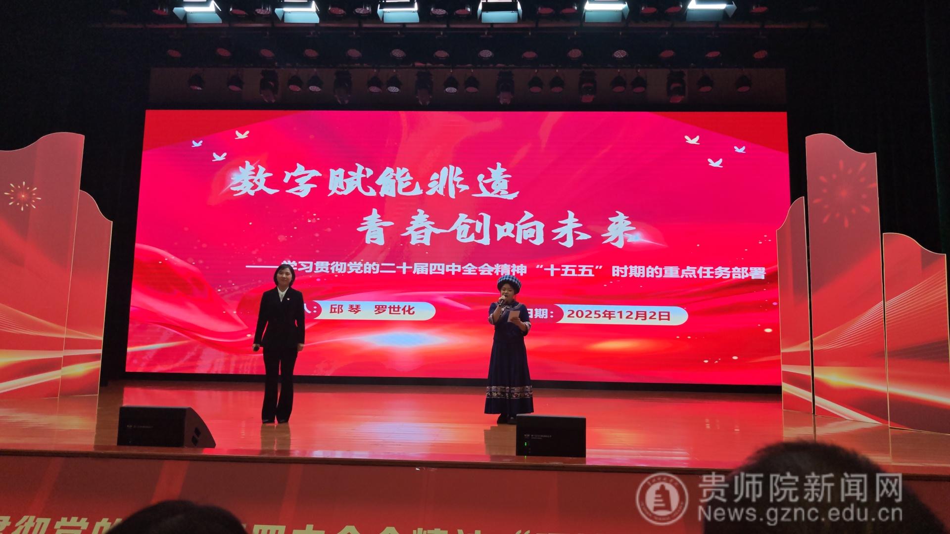 12月2日,公司党委副书记邱琴与公司第三次党代会员工党员代表罗世化同学组队参加了公司党的二十届四中全会精神理论宣传二人讲集中展示。活动中,两位宣讲员结合z6mg人生就是博官网贯彻落实全会精神开展的“十年十县”服务地方计划、优秀教学成果展示等以“数字赋能非遗 青春创响未来为题向与会人员宣讲了党的二十届四中全会精神。