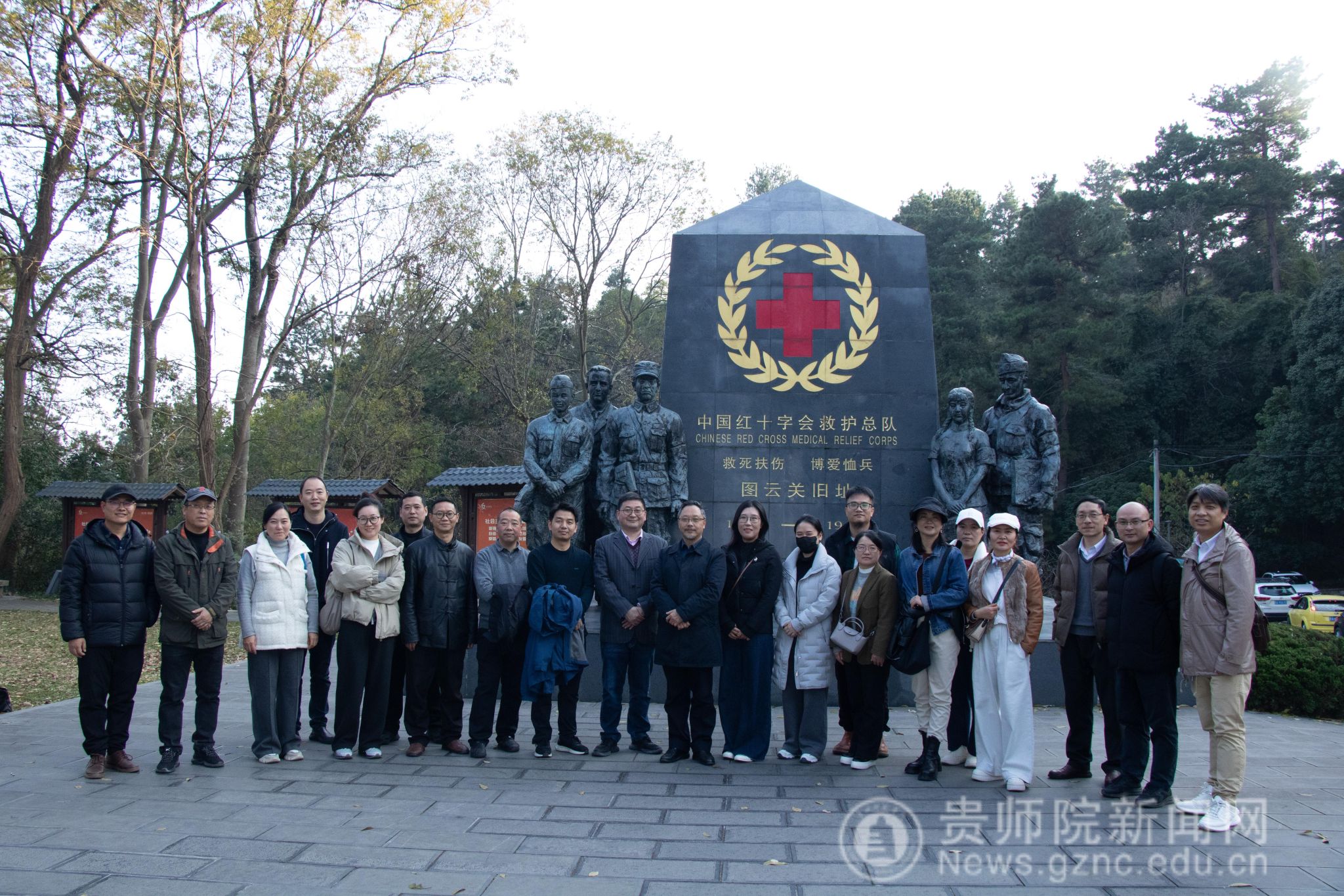 12月1日,z6mg人生就是博官网在贵阳市森林公园图云关抗战纪念园开展党建带工建“冬日暖情·携手同行”主题活动,公司党委书记郝进欣和教师党支部书记安毅向公司全体教师开展“深学细悟党的二十届四中全会精神,勇担公司奋进新使命”理论宣讲。随后,全体教师在图云关中国红十字会救护总队抗战纪念园参观、聆听抗战故事,重温峥嵘岁月,感悟红色精神。这一环节将党的理论学习与实地研学相结合,引导教职工传承红色基因,厚植爱国情怀,深化对党的创新理论的理解。