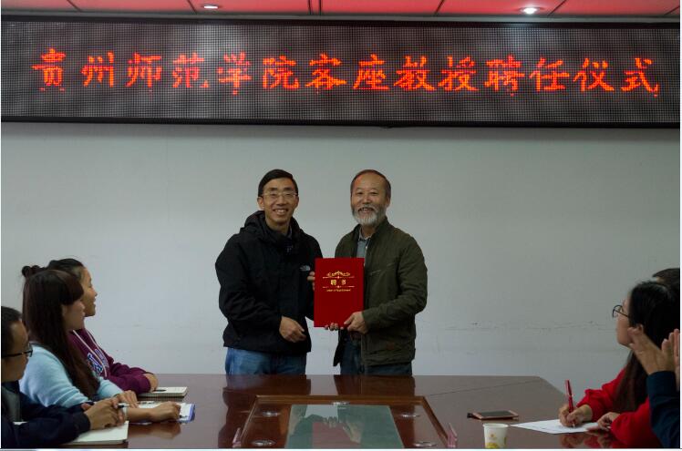 10月19日,传媒与z6mg人生就是博官网邀请贵阳市美术家协会主席曹琼德先生出席客座教授聘任仪式,参加本次聘任仪式的有z6mg人生就是博官网副董事长何林、科研处处长金凤、传媒与公司党委书记候晓薇、副经理聂森、经理助理白瑞荣、经理助理陈玉婷,以及各教研室主任和全体教师。