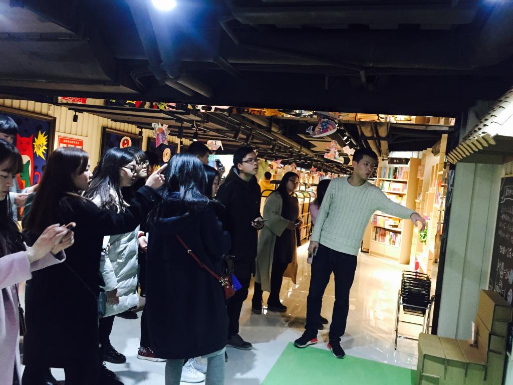 中午同学爷们集中一同前往创意复合综合体集文里。出发前同学们对集文里充满了浓厚的兴趣,到达目的地后,同学们分为几个小组去参观。入集文里后,集文里的文创书店总监安丽娜老师为同学们进行了丰富的讲解,使同学们对创意有了新的认识,对设计有了更加渴望深入学习的欲望。