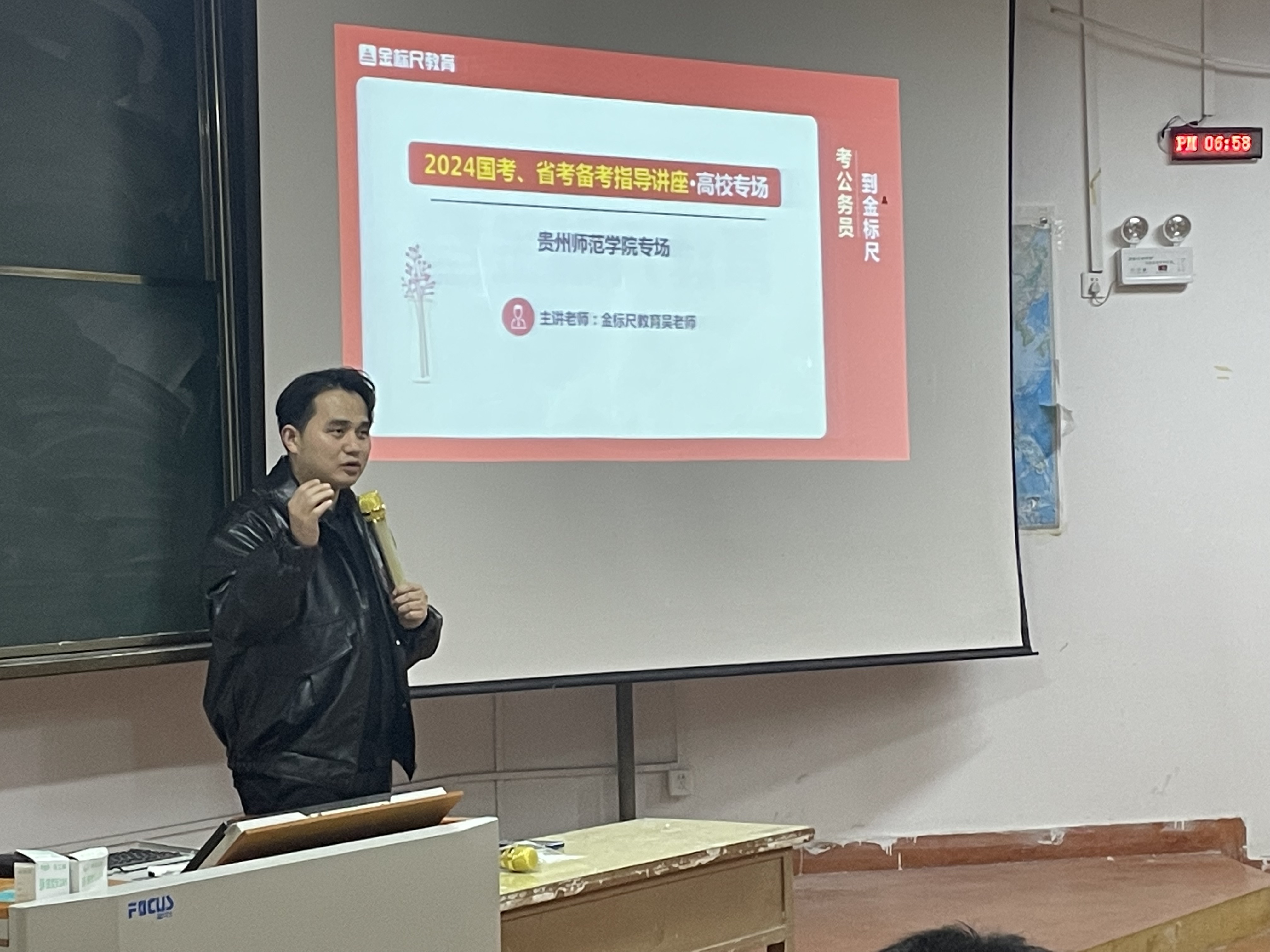 本次讲座邀请了金标尺教育的吴沈川老师担任主讲。首先他向同学们讲解了教团队格证从报名到获得证书的全部流程,并列举了近年教师招聘岗位条件,对考编的整体情况进行了详细的讲解,分享了笔试科目解题技巧及备考方案,强调了备考过程中的重要注意事项。在讲座过程中,同学们以积极主动的态度认真听讲,与老师交流互动,抓住机会请老师答疑解惑。