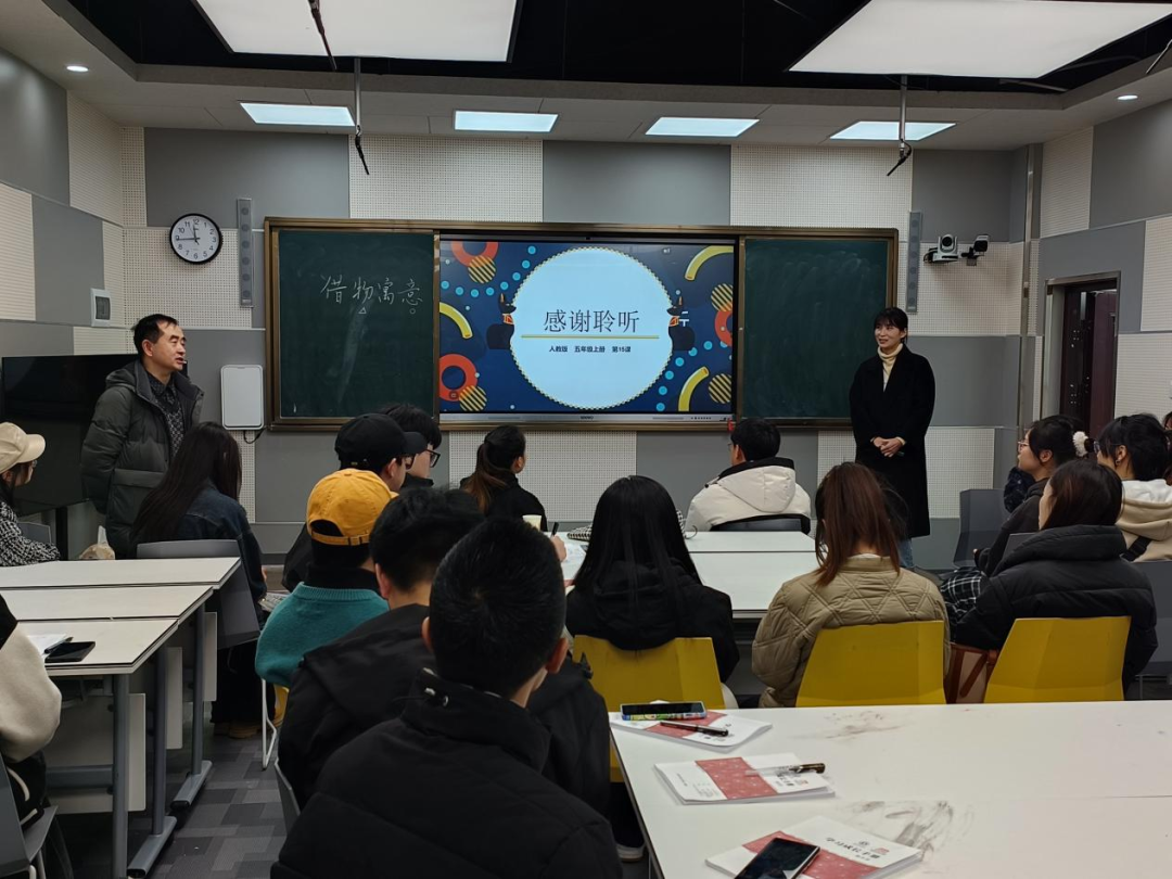 听完两堂公开课后,在现场研习交流活动,2022级美术学班的同学们向乌当市新天小学的两位老师提出与中小学美术课堂相关的内容,该校艺体组主任刘红老师与聂荣升老师现场解答疑惑,并向同学们提出建议。最后由李念劬老师进行了总结讲话,通过与老师的交流,同学们对公司产品有了更深入的理解,对自己的公司产品能力也有了更清晰的认知。
