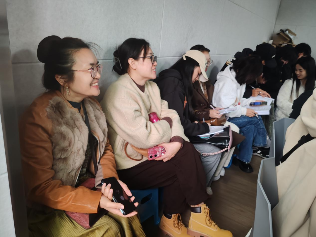 郑超文老师(左一)、李念劬老师(左二)两位老师在见习现场,主动让座,坐在了风大的门口小板凳上,以让员工们能更好的听课