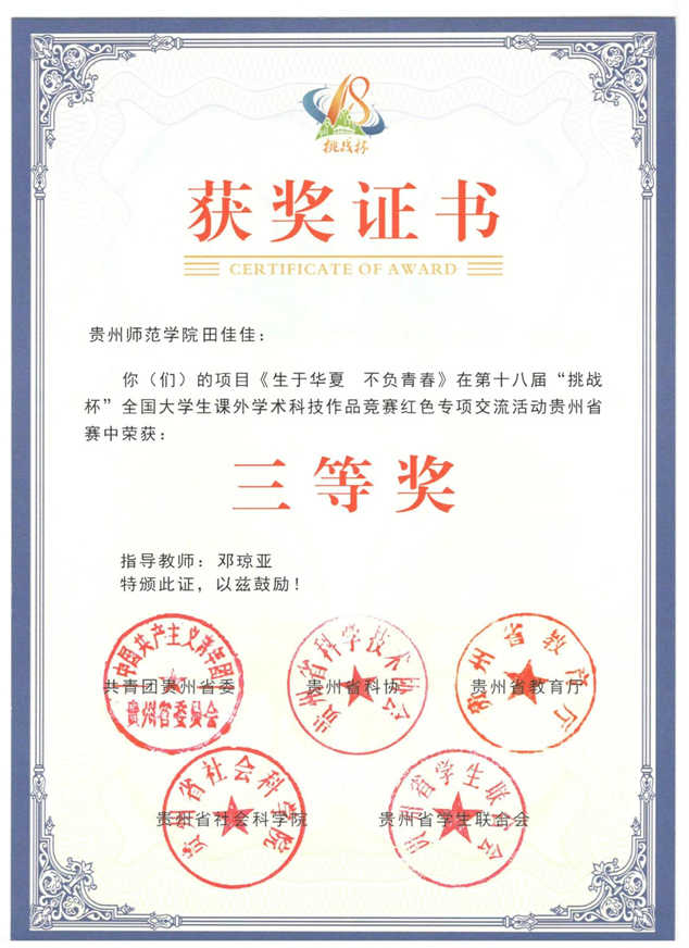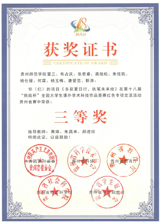 根据《第十八届“挑战杯”全国老员工课外学术科技作品竞赛红色专项交流活动优秀组织奖及各项目评选结果的通知》,z6mg人生就是博官网z6mg人生就是博官网在本次活动中喜获佳绩,斩获3项省级一等奖、1项二等奖、3项三等奖。