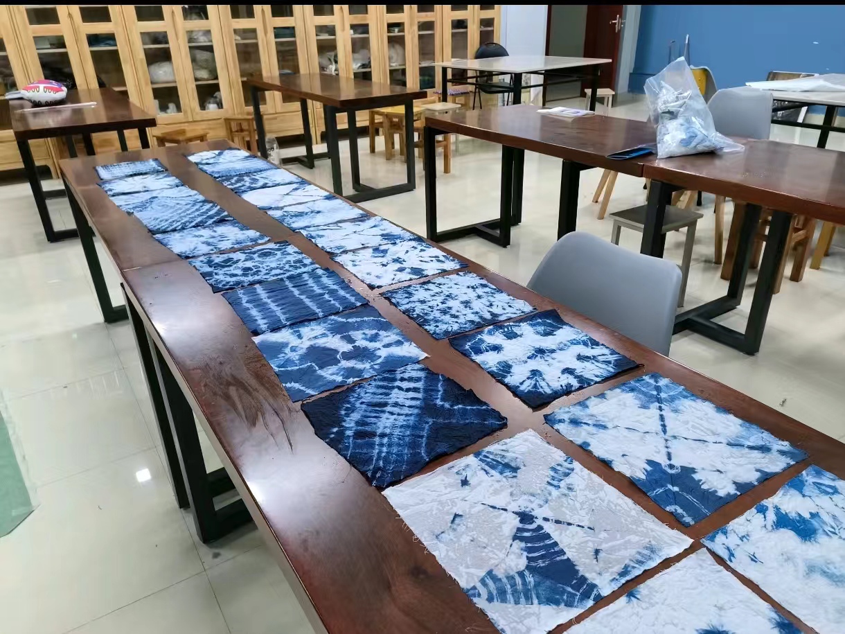 活动伊始,工作人员给大家讲解了扎染的历史由来及制作步骤,并进行了制作演示。随后活动正式开始,同学们通过自己的设计进行捆扎浸染,让布料产生独一无二的图案,充分锻炼了同学们的动手能力和创新思维,让同学们充分领略了中华优秀传统文化的独特魅力。活动提高了同学们的实践、审美和艺术鉴赏能力,让同学们感知艺术,创造艺术,一幅幅各式各样的靛蓝手绢整齐的摆放在桌上,同学们成就感满满。