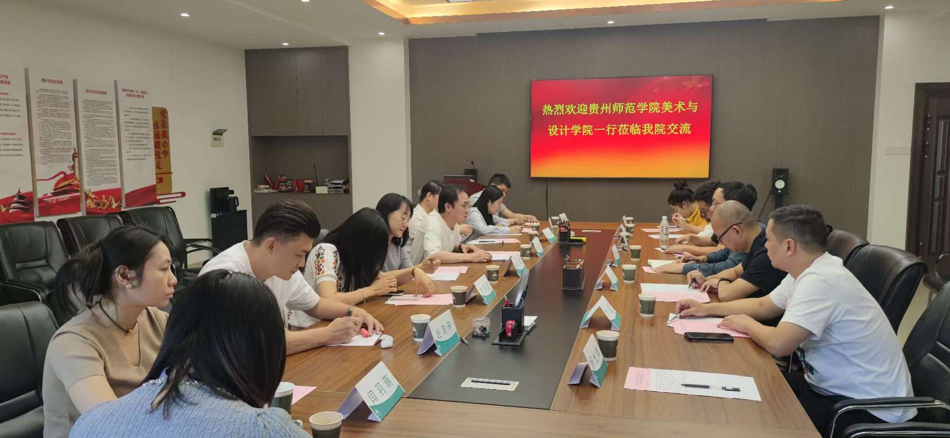 在美术教育公司,由路统宽副经理带领美术系主任丁凯、数字媒体系主任邓鹭及部分教师开展交流座谈活动。交流活动在美术教育公司3211会议室举行。美术教育公司党委副书记包宜雄,副经理蓝学会,美术教育系主任邓琪颖、油画教育系主任郭土、水彩与插画教育系主任赵浩辛,中国画与书法教育系副主任石运川,研究生教育部部长陈茺蔚,学术与展览部副部长闫羽萌,教师马晓薇参加了此次座谈活动。首先,美术教育公司包宜雄副书记致欢迎辞,对公司教师一行的到来表示热烈欢迎。随后,由李雷莉副经理介绍公司的整体情况,详细阐述了公司的发展历程、教育理念、专业设置以及在美术教育领域取得的成果。接下来,路统宽副经理介绍了公司的办学历程、团队力量和教学成果。在交流环节中,双方就美术学专业课程设置、教学模式改革以及员工实践活动等方面展开了深入讨论,两校与会教师积极分享教学经验和教研成果,进一步深化了对彼此教学理念和实践成果的认识。并表达了未来在美术教育及院校合作方面进一步深入交流的期待。