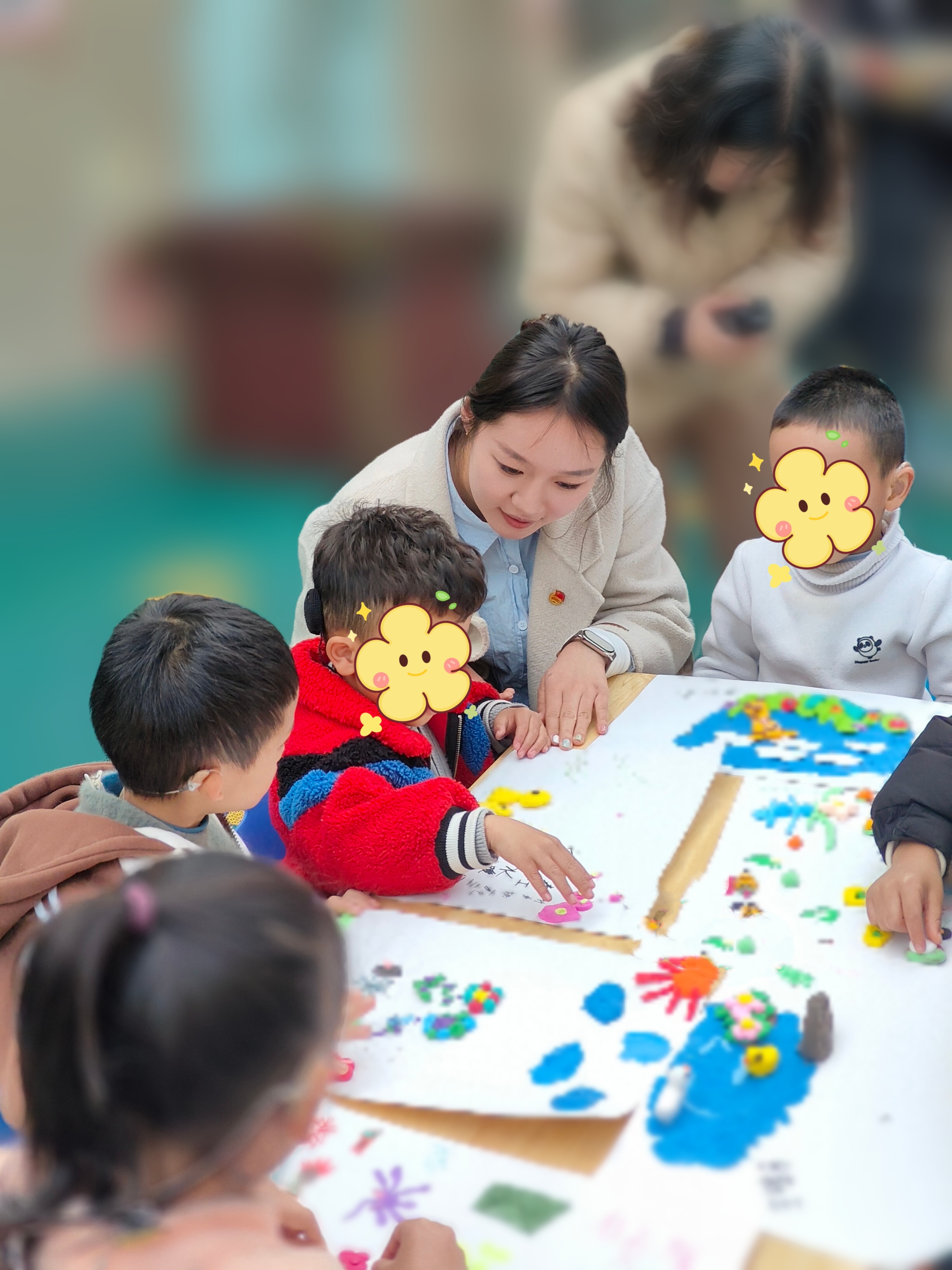 志愿者们亲切地向孩子们介绍了绘画工具,并详细讲解了本次绘画的主要内容。为了激发孩子们对绘画的兴趣,本次活动采用了超轻粘土这一新颖的绘画方式,让孩子们亲身感受不同工具带来的独特创作体验。在志愿者们耐心的引导下,孩子们逐渐沉浸在艺术的海洋中,用小手创作出充满童趣和想象力的作品。绘画过程中,志愿者们耐心地陪伴在孩子们身边,给予他们细心的指导和鼓励。孩子们或是认真地涂抹着色彩,或是专注地塑造着粘土造型,每一个表情、每一个动作都充满了对绘画的热爱和对这个世界的好奇。最后,志愿者们引导并鼓励听障小朋友们描述绘画的作品并表达内心的感受,在这个过程中,绘画不仅仅是一种艺术形式,更成为了志愿者与孩子们沟通的桥梁。