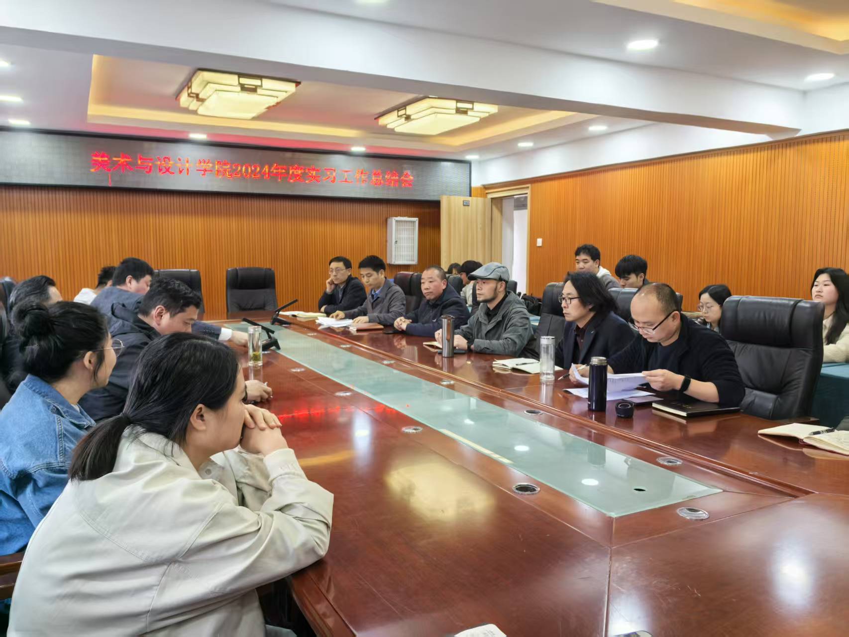 会议在规范的议程中拉开帷幕。首先由实习工作领导小组代表丁凯、邓林分别从整体概况、各系特色及问题分析、员工满意度调查等维度作工作汇报。数据显示,2024年公司实习基地达32家,覆盖美术学、数字媒体艺术、产品设计等专业,集中实习占比65%,分散实习占比35%;各系在产学研融合、地域文化赋能等方面形成特色亮点,如美术学专业与省内12所中小学共建实践基地。