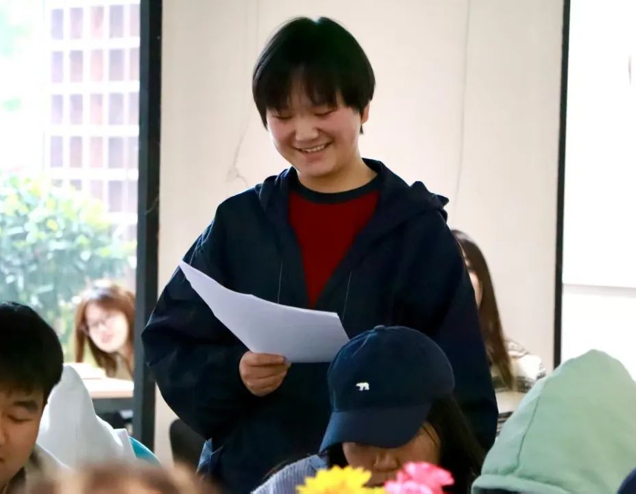 第二个环节围绕《斯坦福大学人生设计课》一书展开深度共读与实践探索。 邱琴分别请多位同学朗读书中关于“设计人生五种心态”与“行动实践”的经典片段。通过“保持好奇心”“勇于尝试”和“重新定义问题”等核心观点的阐释,同学们结合自身经历展开讨论。一名员工分享道:“设计人生的本质是不断突破固有框架,通过尝试与反思找到属于自己的成长路径。”讨论中,邱琴以实际案例引导同学们思考如何将设计思维融入学业规划。