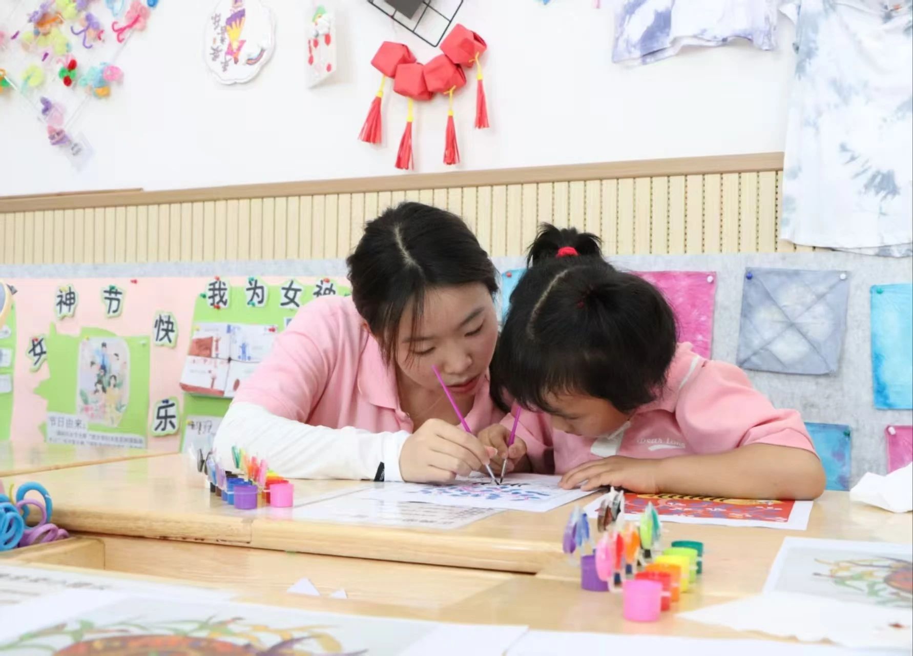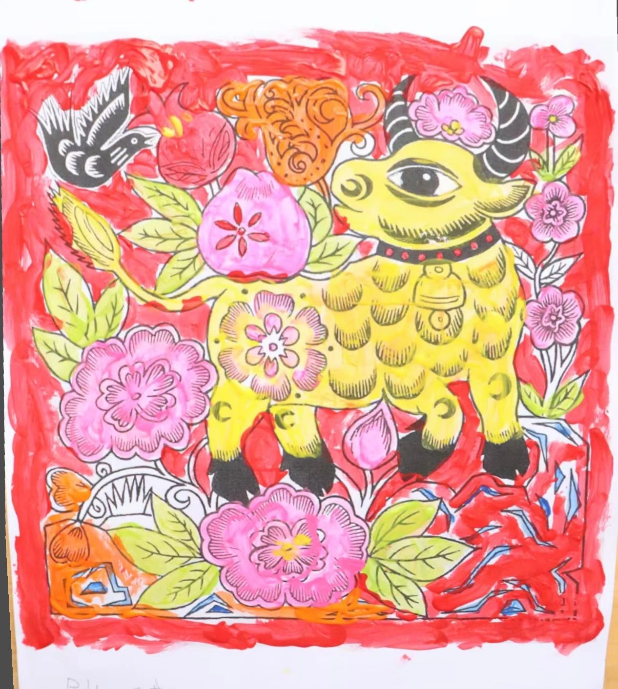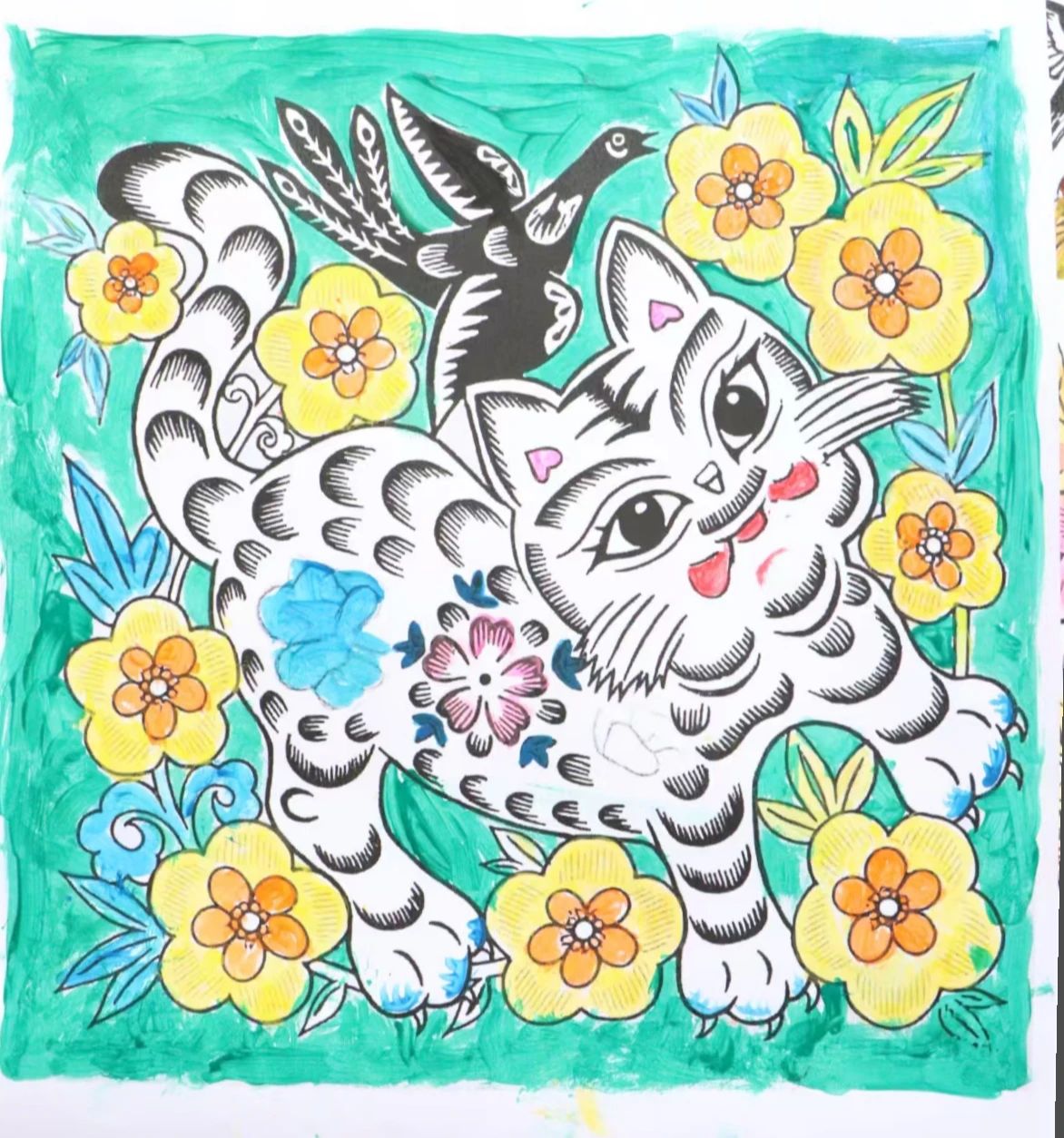 理论浸润心灵,实践激发创造。在孩子们对农民画有了初步感知后,冯慧与团队成员用心指导,带领小朋友们执起画笔,亲身体验创作的乐趣。他们鼓励孩子们从熟悉的乡村景物、家中的小动物、田间的劳作场景或天马行空的想象中汲取灵感,大胆运用农民画标志性的鲜艳色彩和夸张造型进行表达。一时间,画纸上跃动着童真的线条与斑斓的色块,质朴的生活之美在孩子们的笔尖流淌、绽放。团队成员细致耐心的陪伴与启发,让整个创作过程洋溢着欢乐与发现的惊喜。