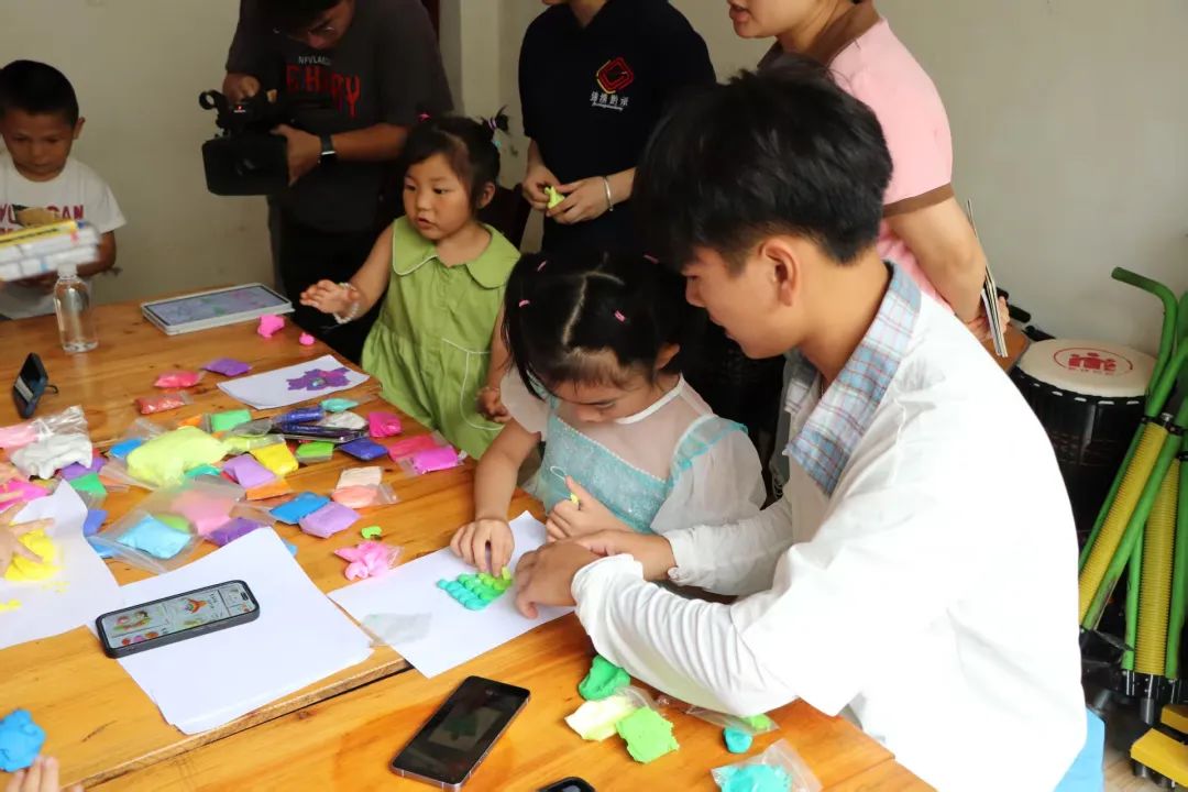 看到孩子们从最初的拘谨到后来大胆创作,脸上洋溢着自信和快乐,这种成就感难以言喻。他们的想象力和对美的纯粹感知,深深打动着我们。 志愿者高青青感慨道:“美育的种子,真的可以在最简单的材料中生根发芽。”