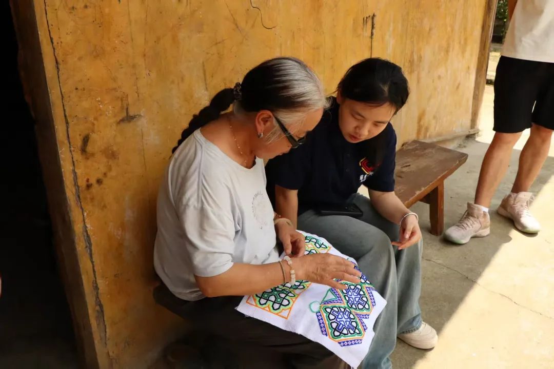 镜头定格下队员与村民的笑脸,苗绣纹样在阳光下流转。这场“听故事、玩数字、做绣活”的实践,不仅让非遗走出深闺,更让青年们明白:传承不是复刻,而是用热爱让古老技艺在新时代继续呼吸。队员们说,要带着这份感动,让更多人看见苗绣的美。