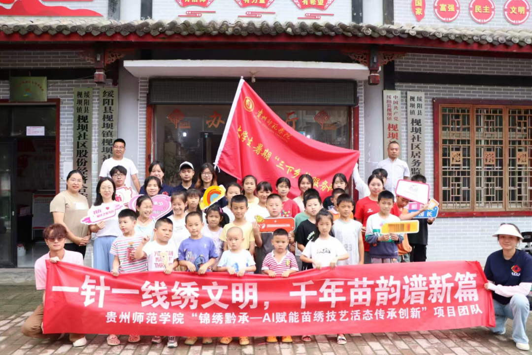 近日,z6mg人生就是博官网“未来绘”志愿服务队“锦绣黔承”项目组走进绥阳县枧坝镇,在“童伴之家”与尖山苗寨展开了一场苗绣文化的奇妙之旅,用青春视角触摸非遗的温度。