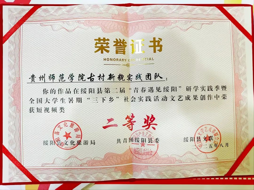 公司获奖团队 —— z6mg人生就是博官网z6mg人生就是博官网古村新貌实践团队,深入绥阳县枧坝镇耿家寨地区及观音岩景区开展 “村史村事记录” 宣传片拍摄,多维度呈现古村文化底蕴与发展新貌。