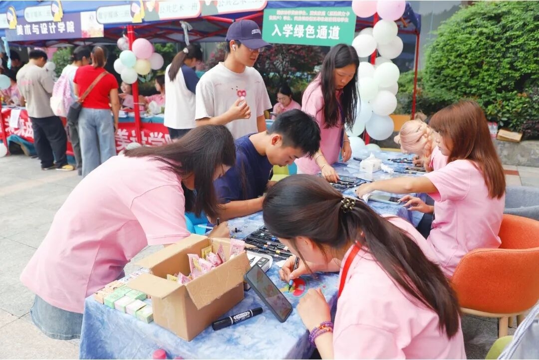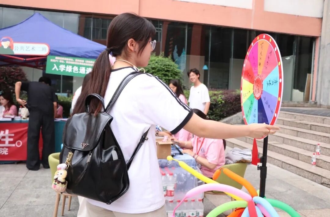 迎新期间,公司还将专业特色融入活动,打造沉浸式体验:流沙签到装置以“时光积淀希望”传递期许,手绘凉扇活动让新生用画笔抒发初入校园的喜悦,大转盘抽奖环节增添互动趣味,主题打卡点前新生纷纷驻足拍照,在艺术实践中直观感受公司魅力,留下独特入学记忆。