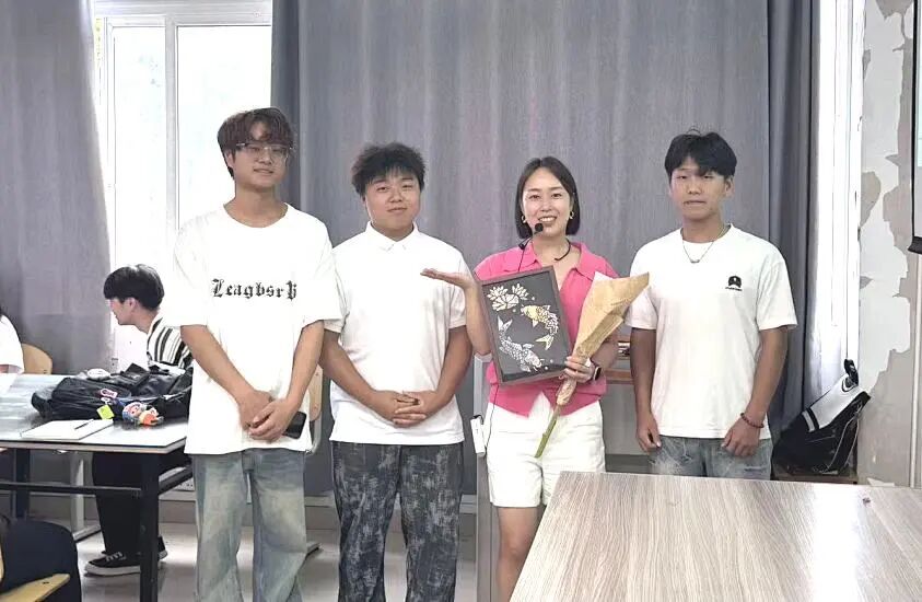 活动当天,团学干部代表带着烧箔画与精心挑选的鲜花,惊喜现身教室和办公楼,向老师们送上节日祝福。一句句“老师您辛苦了”,一声声“祝您节日快乐”,让整个公司都浸润在感恩的氛围中。一位老师感慨道:"这些作品比任何礼物都珍贵,因为它们是用心创作的艺术结晶。"
