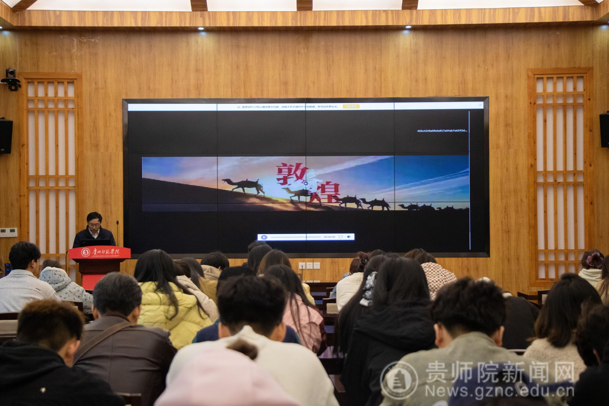 上午,中央美术公司吴守峰教授作《如果敦煌会说话》专题报告。他以材料学与图像学的交叉视角,展开“敦煌五色、飞天形象演变、藻井与纹样体系、乐舞图像与故事画”等议题,阐明矿物颜料的稳定性与审美建构、飞天形体与线性节奏的时代演进,以及藻井格局所呈现的“秩序之美”。通过“让壁画开口说话”的叙事框架,吴教授把传统视觉母题与当代材料表达、展陈教育与美育教学有效衔接,为课程建设与创作实践的跨学科转化提供了新思路。