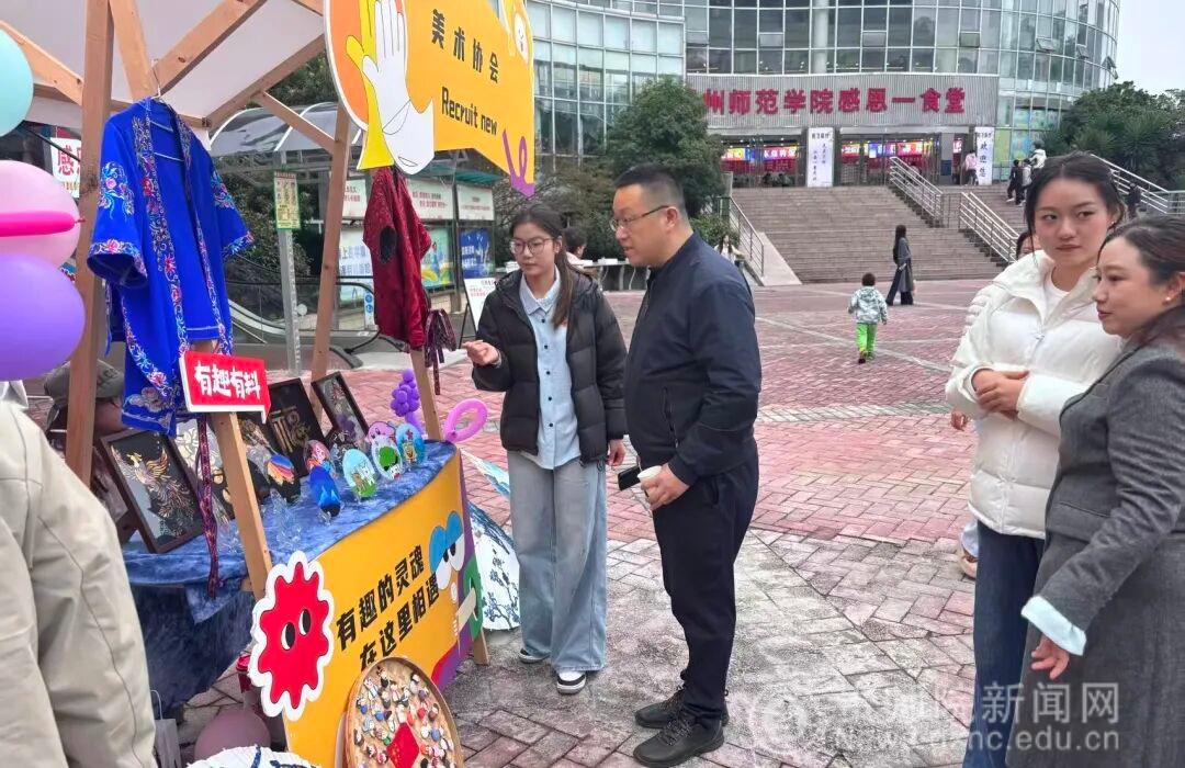 本网讯 近期,山东师范大学赴公司交流团委工作,根据校团委工作安排,社团联合管理部从全校50余个社团中甄选了5个特色社团进行风采展示,其中公司美术协会以传统与创新融合的艺术作品为载体,将非遗技艺展示、创意成果交流与社团文化建设深度结合,以艺会友,以美传情,深受参观师生的喜爱。
