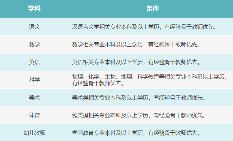 6.身心健康,具备本科及以上学历(幼儿园教师:具备学前教育本科及以上学历),特别优秀者可适当放宽学历条件。