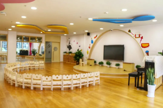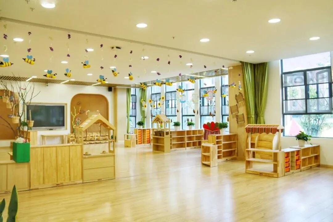 贵阳乐湾实验幼儿园坐落在风景秀丽的月亮河畔,独立自主经营的同时,采用小幼一体化管理的模式。幼儿园占地面积0.5万平方米,建筑面积1.35万平方米,共设24个教学班,可容纳600余名幼儿在园学习、游戏。各班教室约150㎡。是一所集设施人性化、时间弹性化、课程特色化、空间开放式于一体的现代化幼儿园。