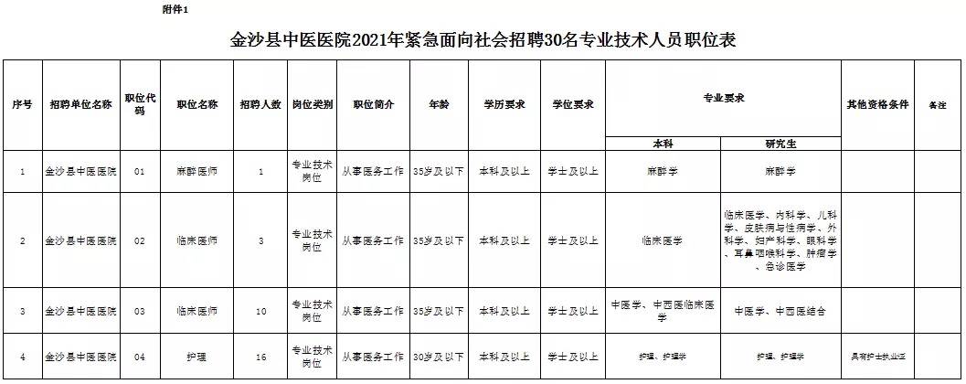 1:安顺市镇宁自治县2021年下半年事业单位面向社会公开招聘工作人员岗位一览表