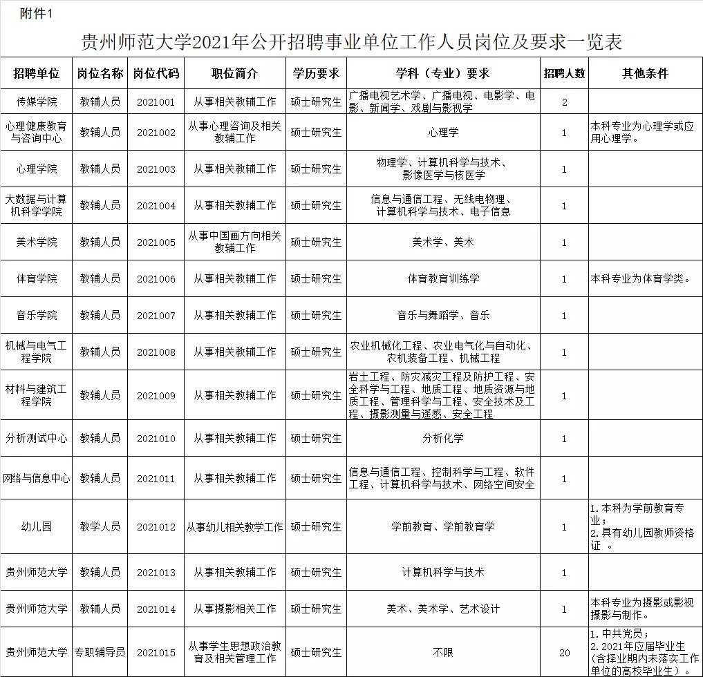 附件1:安顺市2021年下半年部分市直事业单位面向社会公开招聘工作人员岗位一览表.xls